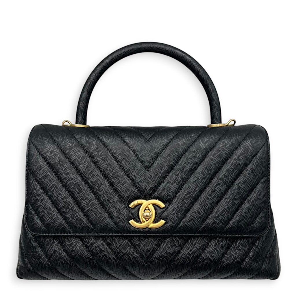 Coco Medium Black Top handle Bag in Caviar Leather, Gold hardware