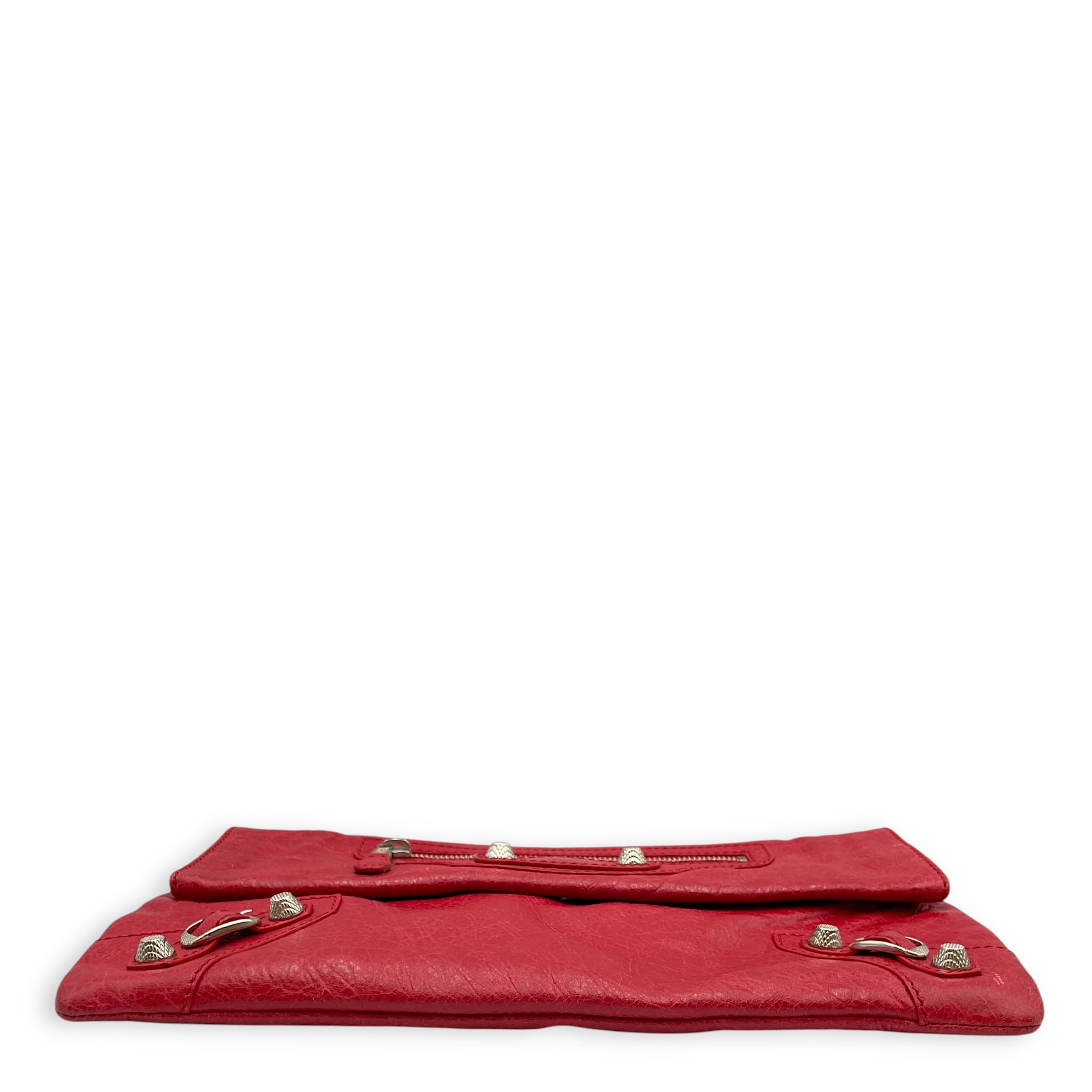 City Pouch Red Crossbody Bag in Distressed Leather, Silver hardware