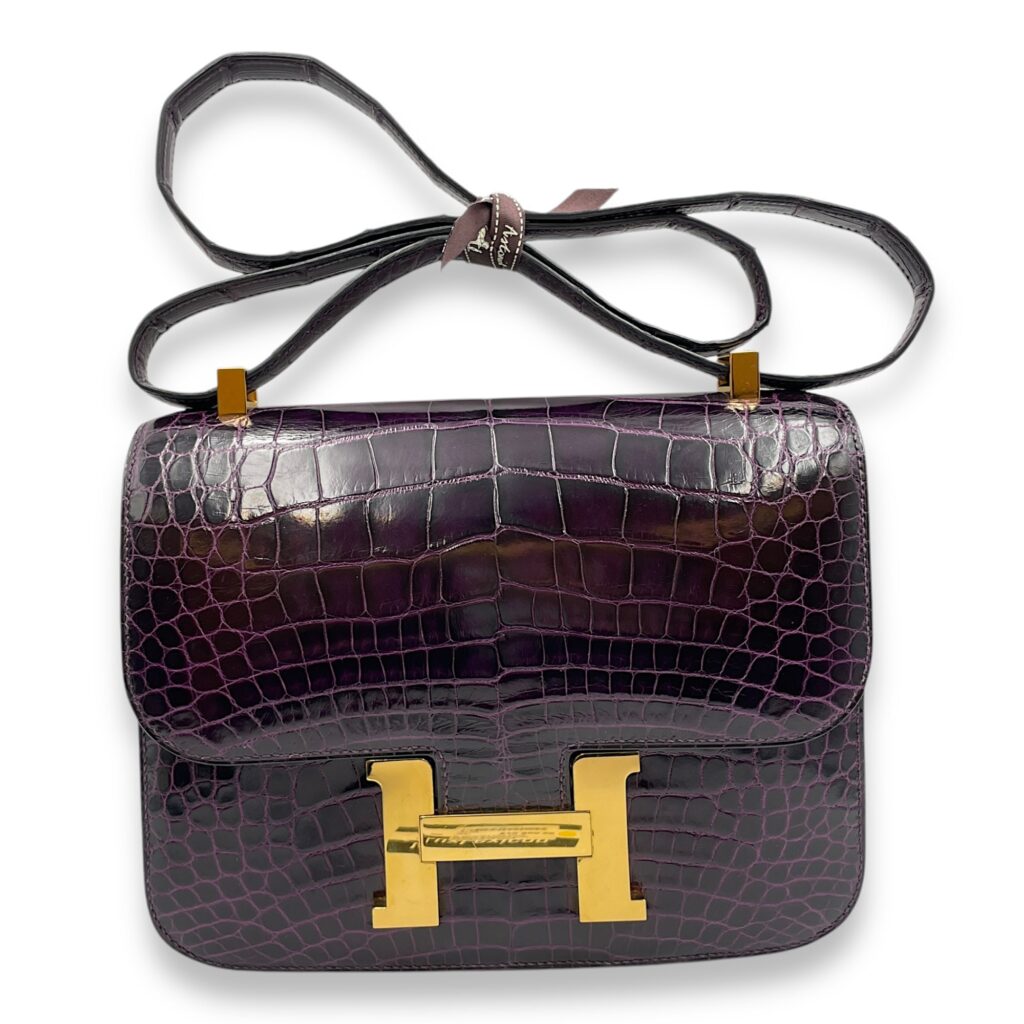 Constance 24 Amethyst in Shiny Alligator, Gold hardware
