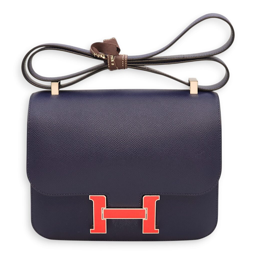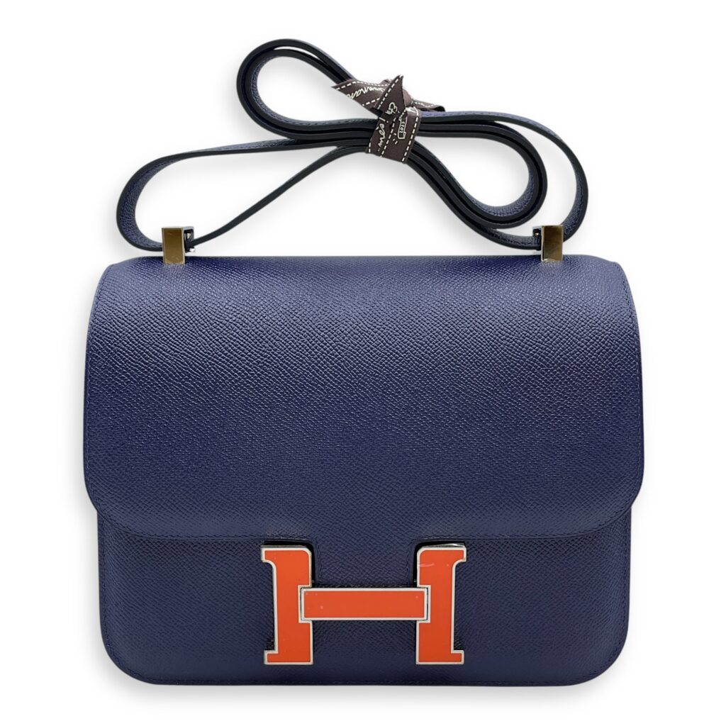 Constance 24 Blue Sapphire in Epsom, Orange Poppy Enamel hardware